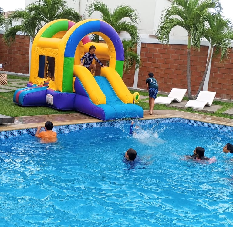 Tenemos inflables para piscina, casas y áreas sociales, ideales para cualquier actividad acuática.